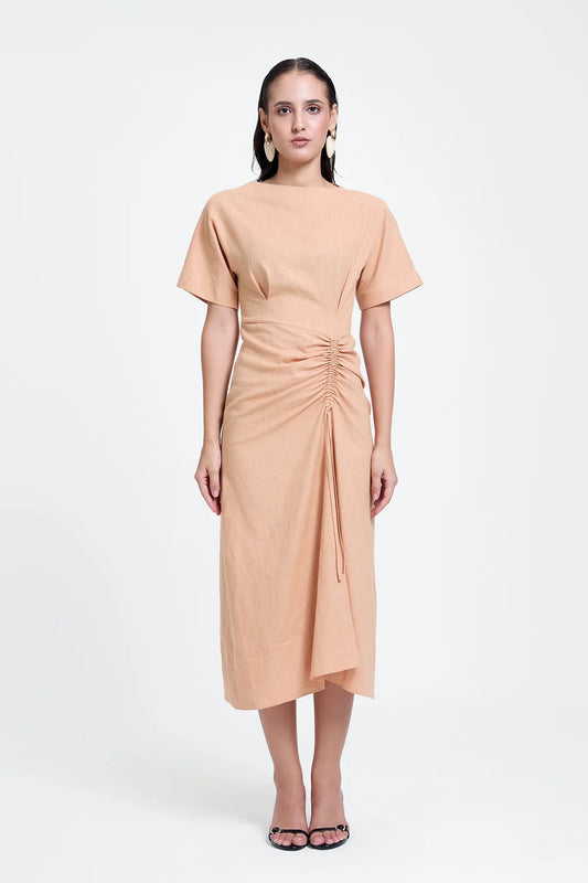 Linen Ruched Drape Dress