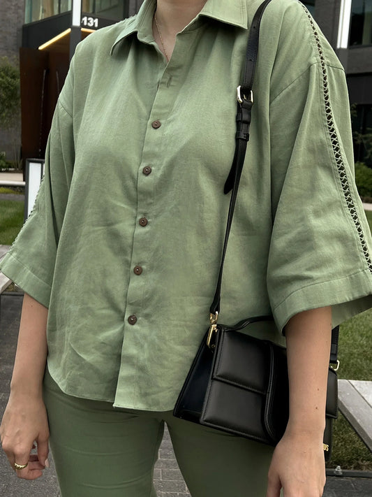 Olive Collared Short Shirt