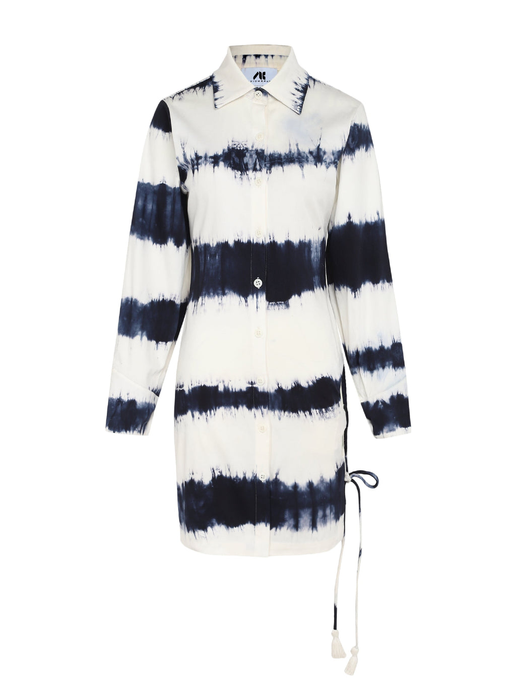Detailed with tie-dye print in off white with blue
