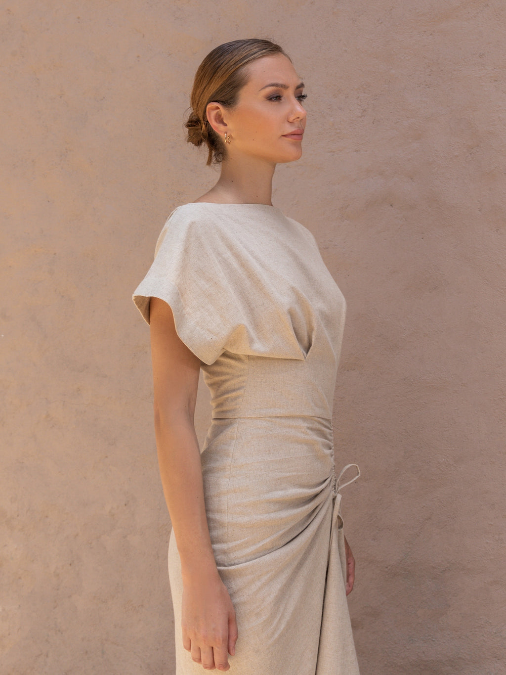 Linen Ruched Drape Dress